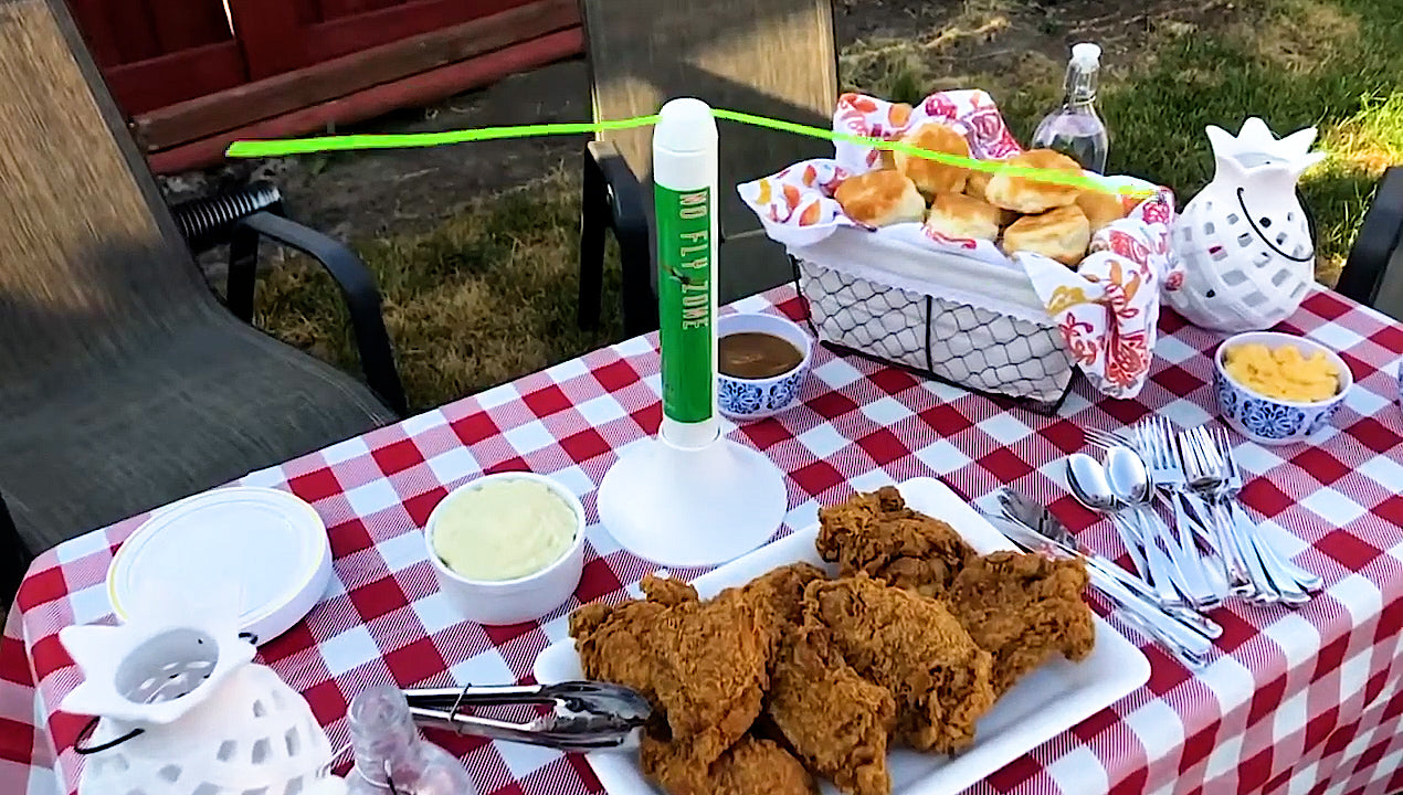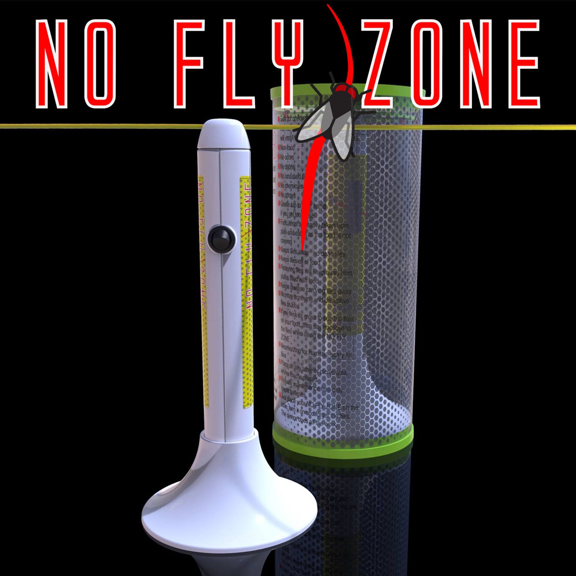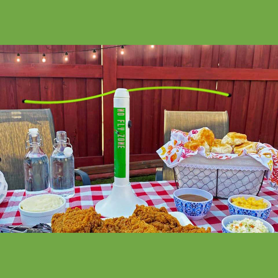 No Fly Zone makes fly control effortless. Simply place it on any table or picnic area where food is present, flip the switch, and watch it keep flies away. With no assembly required and only one D cell battery needed, our low-maintenance system is perfect for any meal.